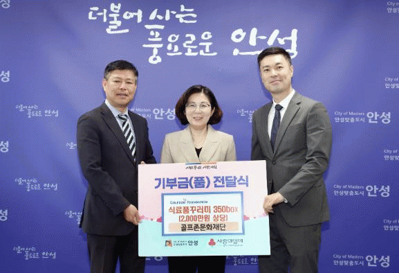 [NWS¹æ¼Û=Çѽ¸ñ ±âÀÚ]¾È¼º½Ã´Â 4¿ù 22ÀÏ °ñÇÁÁ¸¹®È­Àç´ÜÀ¸·ÎºÎÅÍ Àú¼ÒµæÃþÀ» À§ÇÑ 2,000¸¸ ¿ø »ó´çÀÇ ½Ä·áǰ²Ù·¯¹Ì¸¦ Àü´Þ¹Þ¾Ò´Ù°í ¹àÇû´Ù. À̹ø ±âºÎ´Â °ñÇÁÁ¸¹®È­Àç´ÜÀÇ »çȸ°øÇåȰµ¿ ¡®°ñÇÁÁ¸ ÀÌ¿ô»ç¶û Çູ³ª´®¡¯ÀÇ ÀÏȯÀ¸·Î ÁøÇàµÆ¡¦