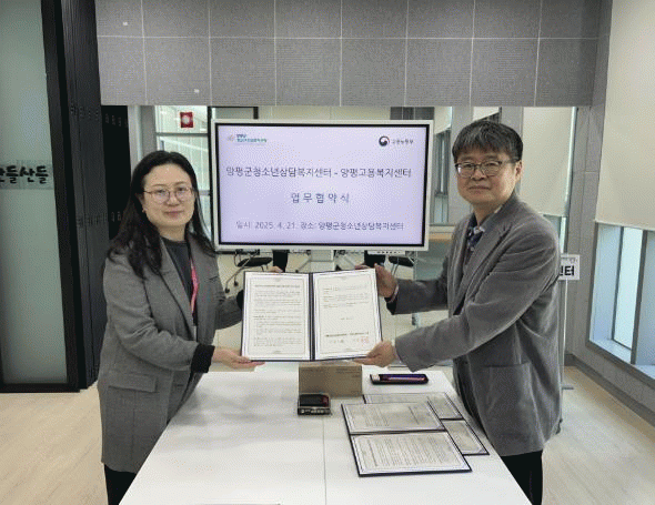 [NWS¹æ¼Û=Çѽ¸ñ ±âÀÚ]¾çÆò±ºÃ»¼Ò³â»ó´ãº¹Áö¼¾ÅÍ¿Í ¾çÆò±ºÇб³¹Ûû¼Ò³âÁö¿ø¼¾ÅÍ´Â 21ÀÏ 2½Ã ¾çÆò°í¿ëº¹Áö¼¾ÅÍ¿Í ¾çÆò±º û¼Ò³âÀÇ °í¿ë ¹× ½É¸® »ó´ã Áö¿ø ¿¬°è¿¡ °üÇÑ ¾÷¹«Çù¾àÀ» ü°áÇß´Ù. À̹ø Çù¾àÀ» ÅëÇØ ¾ç ±â°üÀº ¡â¾çÆò±ºÃ»¼Ò³â»ó¡¦
