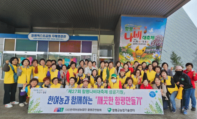 [NWS¹æ¼Û=Çѽ¸ñ ±âÀÚ]»ç´Ü¹ýÀÎ Çѱ¹¿©¼º³ó¾÷ÀÎÇÔÆò±º¿¬ÇÕȸ°¡ Á¦27ȸ ÇÔÆò³ªºñ´ëÃàÁ¦ÀÇ ¼º°øÀûÀÎ °³ÃÖ¸¦ ±â¿øÇϸç ȯ°æ Á¤È­ Ȱµ¿¿¡ ³ª¼¹´Ù. ÇÔÆò±ºÀº 23ÀÏ ¡°(»ç)Çѱ¹¿©¼º³ó¾÷ÀÎ ÇÔÆò±º¿¬ÇÕȸ°¡ Àü³¯ ¿¢½ºÆ÷°ø¿ø ÀÏ´ë¿¡¼­ ȯ°æ Á¤È­ ¡¦