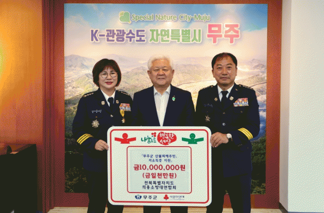 [NWS¹æ¼Û=Çѽ¸ñ ±âÀÚ]ÀüºÏƯº°ÀÚÄ¡µµ ÀÇ¿ë¼Ò¹æ´ë¿¬ÇÕȸ À±Á¤¼ø ¿©ÀÚ È¸Àå(¹«ÁÖ±º ÀÇ¿ë¼Ò¹æ´ëÀå °âÀÓ)°ú °øÀºÅ ³²ÀÚ È¸ÀåÀÌ Áö³­ 23ÀÏ ¹«ÁÖ±ºÀ» ã¾Æ ¼º±Ý 1õ¸¸ ¿øÀ» ±âŹÇß´Ù. µÎ »ç¶÷Àº ÀüºÏƯº°ÀÚÄ¡µµ ÀÇ¿ë¼Ò¹æ´ë¿¬ÇÕȸ ȸ¿øµéÀ» ¡¦