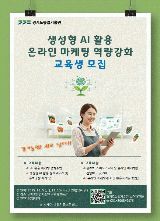 [»çȸ] °æ±âµµ³ó¾÷±â¼ú¿ø, »ý¼ºÇü AI Ȱ¿ë ³ó¾÷ ¸¶ÄÉÆÃ ±³À°»ý ¸ðÁý |2025. 11.05