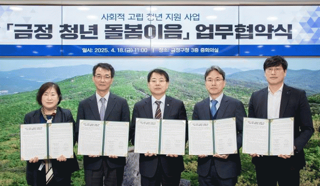 [NWS¹æ¼Û=Çѽ¸ñ ±âÀÚ]ºÎ»ê½Ã ±ÝÁ¤±¸´Â 2025³â 4¿ù 18ÀÏ, »çȸÀû °í¸³ û³âÀÇ Ã¼°èÀûÀ̰í ÅëÇÕÀûÀÎ Áö¿øÀ» À§ÇØ ºÎ»ê±¤¿ª½Ã»çȸ¼­ºñ½º¿ø, ±ÝÁ¤±¸Á¾ÇÕ»çȸº¹Áö°ü, ³²±¤Á¾ÇÕ»çȸº¹Áö°ü, ±ÝÁ¤±¸ Á¤½Å°Ç°­º¹Áö¼¾ÅÍ¿Í '±ÝÁ¤ û³â µ¹º½ ÀÌÀ½' ¾÷¡¦