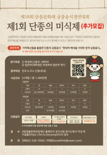 [»çȸ] ¹®È­µµ½Ã ¿µ¿ù, Á¦58ȸ ´ÜÁ¾¹®È­Á¦ ±ÃÁßÀ½½Ä°æ¿¬´ëȸ ¡®Á¦1ȸ ´ÜÁ¾ÀÇ ¹Ì½ÄÁ¦¡¯°³ÃÖ |2025. 04.23