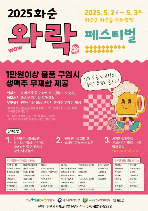 [»çȸ] È­¼øÁ߾ӷΰñ¸ñÇü»óÁ¡°¡, '2025 È­¼ø ¿Í¶ô Æä½ºÆ¼¹ú °³ÃÖ |2025. 04.22