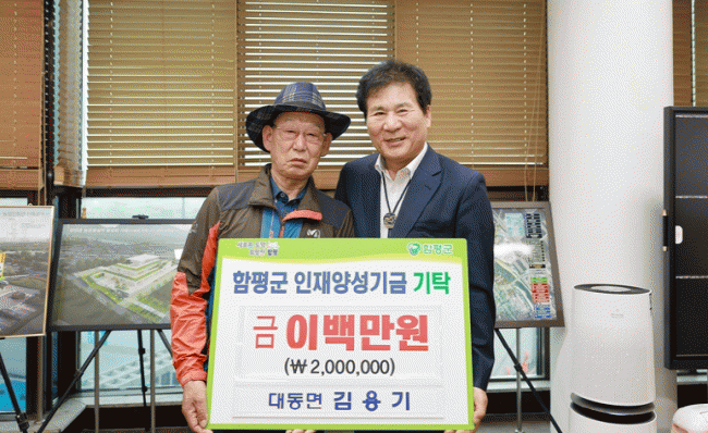 [NWS¹æ¼Û=Çѽ¸ñ ±âÀÚ]Àü³² ÇÔÆò±º¿¡¼­ ´ëµ¿¸é¿¡ °ÅÁÖÇÏ´Â ±è¿ë±â(76¼¼) ¾¾°¡ ÇÔÆò±º Áö¿ªÀÎÀç ¾ç¼ºÀ» À§ÇØ ÀåÇбÝÀ» ±âÅ¹ÇØ Áö¿ª»çȸÀÇ ±Í°¨ÀÌ µÇ°í ÀÖ´Ù. ÇÔÆò±ºÀº 22ÀÏ ¡°´ëµ¿¸é ¸¶·®¸¶À»¿¡ °ÅÁÖÇÏ´Â ±è¿ë±â ¾¾°¡ À̳¯ ÀÎÀç¾ç¼º±â±Ý¡¦