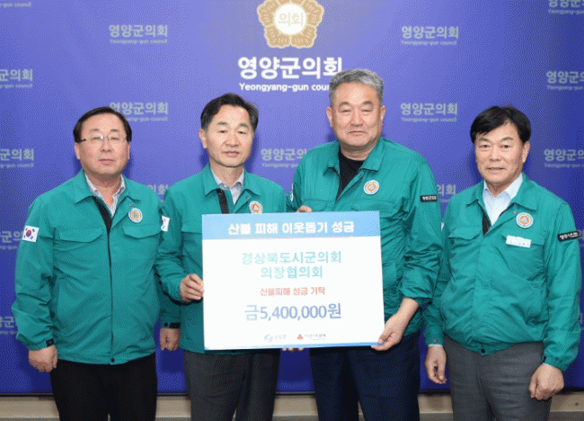 [NWS¹æ¼Û=Çѽ¸ñ ±âÀÚ] ¿µ¾ç±ºÀÇȸ´Â 21ÀÏ, ´ëÇü »êºÒ·Î Å« ÇÇÇØ¸¦ ÀÔÀº ±º¹ÎµéÀ» À§·ÎÇϰíÀÚ °æºÏ½Ã±ºÀÇȸÀÇÀåÇùÀÇȸ(ȸÀå À̵¿Çù)¿¡¼­ ¼º±Ý 540¸¸¿øÀ» Àü´ÞÇß´Ù°í ¹àÇû´Ù. À̳¯ ¼º±Ý Àü´Þ½Ä¿¡´Â °æºÏ½Ã±ºÀÇȸÀÇÀåÇùÀÇȸ¸¦ ´ëÇ¥ÇÏ¿© ¿µ¡¦
