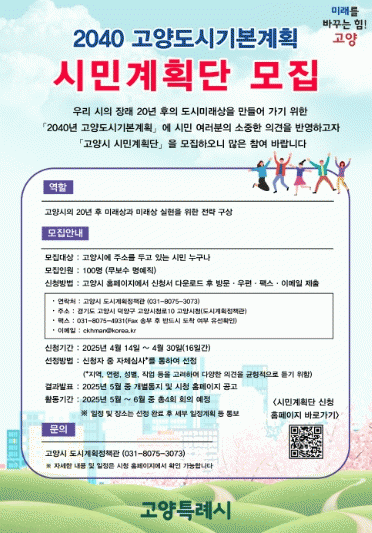 [»çȸ] °í¾ç½Ã, ½Ã¹Î°ú ÇÔ²²ÇÏ´Â ¡®2040 µµ½Ã±âº»°èȹ¡¯¡¦½Ã¹Î°èȹ´Ü ¸ðÁý |2025. 04.22