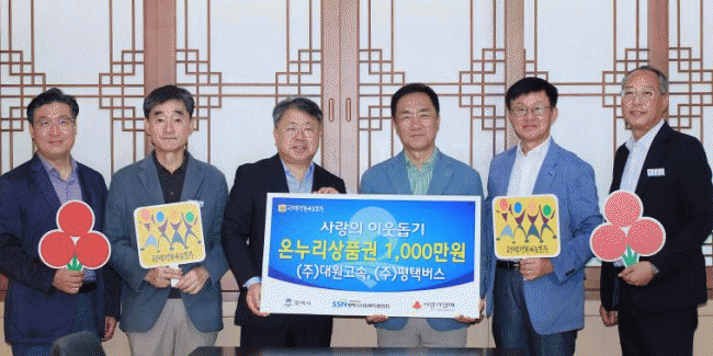 [NWS¹æ¼Û=Çѽ¸ñ ±âÀÚ]¢ß´ë¿ø°í¼Ó¡¤¢ßÆòÅùö½º´Â Áö³­ 17ÀÏ Ãß¼®¿¡ ¾Õ¼­ Ãë¾à°èÃþÀ» À§ÇØ ÆòÅÃÇູ³ª´®º»ºÎ·Î ¿Â´©¸®»óǰ±Ç 1õ¸¸ ¿øÀ» Àü´ÞÇß´Ù. Àü´Þ½Ä¿¡ Âü¼®ÇÑ ¢ß´ë¿ø°í¼Ó¡¤¢ßÆòÅùö½º Çã´öÇà ½ÇÀåÀº ¡°Ç³Á·ÇÑ ÇѰ¡À§¸¦ º¸³»¼ÌÀ¸¸é ¡¦