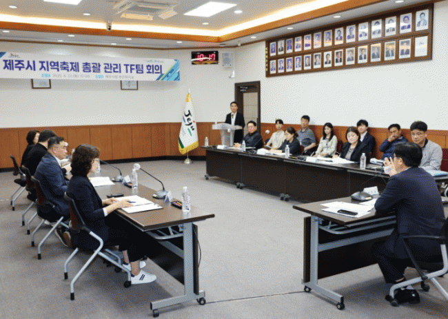 [NWS¹æ¼Û=Çѽ¸ñ ±âÀÚ]Á¦Áֽô 4¿ù 22ÀÏ ½Ãû º»°ü ȸÀǽǿ¡¼­ Áö¿ªÃàÁ¦ ÃѰý °ü¸® TF ȸÀǸ¦ °³ÃÖÇß´Ù. Áö¿ªÃàÁ¦ ÃѰý°ü¸® TF´Â Çö¿øµ· Á¦Áֽà ºÎ½ÃÀåÀ» ´ÜÀåÀ¸·Î Áö³­ 3¿ù Áö¿ªÃàÁ¦¿¡¼­ ¹ß»ýÇÑ ¹®Á¦Á¡µéÀ» ÇØ°áÇÏ¿© ÃàÁ¦¿¡ ´ëÇÑ ½Å¡¦