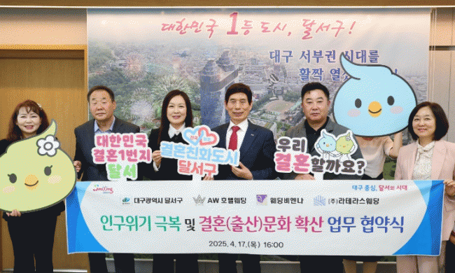 [NWS¹æ¼Û=Çѽ¸ñ ±âÀÚ]´ë±¸ ´Þ¼­±¸°¡ ´Þ¼­±¸Ã»¿¡¼­ AW È£ÅÚ¿þµù, ¿þµùºñ¿£³ª, ¢ß¶óÅ׶󽺿þµù°ú ÇÔ²² ÃÊÀúÃâ»ý Àα¸ À§±â ±Øº¹°ú ±àÁ¤Àû °áÈ¥¡¤Ãâ»ê ¹®È­ È®»êÀ» À§ÇÑ ¾÷¹«Çù¾àÀ» ü°áÇß´Ù. À̹ø Çù¾àÀ¸·Î °¢ ±â°üÀº Àα¸°¨¼Ò¿¡ µû¸¥¡¦