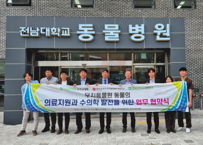 [NWS¹æ¼Û=Çѽ¸ñ ±âÀÚ]±¤ÁÖ±¤¿ª½Ã ¿ìÄ¡°ø¿ø°ü¸®»ç¹«¼Ò¿Í Àü³²´ëÇб³ ¼öÀǰú´ëÇÐ, Àü³²´ëÇб³µ¿¹°º´¿øÀº Áö³­ 21ÀÏ ¿ÀÈÄ Àü³²´ë ¼öÀǰú´ëÇп¡¼­ ¡®µ¿¹°º¹Áö Çâ»ó ¹× ¼öÀÇÇÐ ¹ßÀüÀ» À§ÇÑ ¾÷¹«Çù¾à¡¯À» ü°áÇß´Ù. ÀÌµé ¼¼ ±â°üÀº µ¿¹°¿ø µ¿¡¦