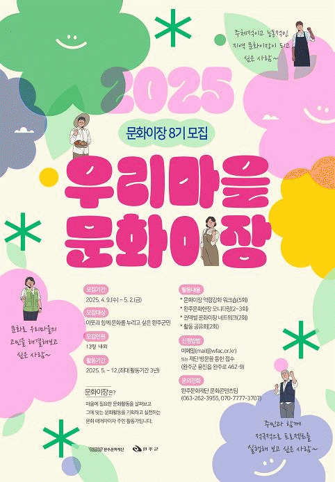 [»çȸ] ¿ÏÁÖ¹®È­Àç´Ü, ¡®¿ì¸® ¸¶À» ¹®È­ÀÌÀ塯 8±â ¸ðÁý |2025. 04.22