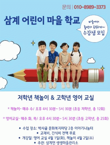 [NWS¹æ¼Û=Çѽ¸ñ ±âÀÚ]ÀӽDZºÀÌ »ï°è¸é ¹Ú»ç°ñ ¹®È­º¹Áö¸¶´ç¿¡¼­ 4¿ùºÎÅÍ Áö¿ªÀÇ Ãʵî»ýµéÀ» À§ÇÑ ¹æ°ú ÈÄ ¼ö¾÷ ±³½ÇÀ» °³°­ÇÏ¿© ³óÃÌ ¸¶À»¿¡ Ȱ·ÂÀ» Á¦°øÇϰí ÀÖ´Ù. ÀÌ ÇÁ·Î±×·¥Àº ÀüºÏƯº°ÀÚÄ¡µµ¿Í ÀӽDZºÀÇ¡®³óÃÌ Ã£¾Æ°¡´Â »çȸ¼­ºñ¡¦