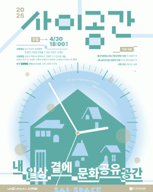 [NWS¹æ¼Û=Çѽ¸ñ ±âÀÚ](Àç)ÀÇÁ¤ºÎ¹®È­Àç´ÜÀÌ ¹®È­µµ½ÃÁ¶¼º»ç¾÷ÀÇ ÁÖ¿ä °úÁ¦ÀΡ®15ºÐ ¹®È­»ýȰ±Ç¡¯ Á¶¼ºÀ» À§ÇØ 2025 ¹®È­ °øÀ¯°ø°£ Áö¿ø»ç¾÷ '»çÀ̰ø°£' Âü¿© °ø°£À» ¿À´Â 4.30.±îÁö ¸ðÁýÇÑ´Ù. ¡®»çÀ̰ø°£¡¯Àº ½Ã¹Î ´©±¸³ª Àϻ󿡼­ µµº¸¡¦