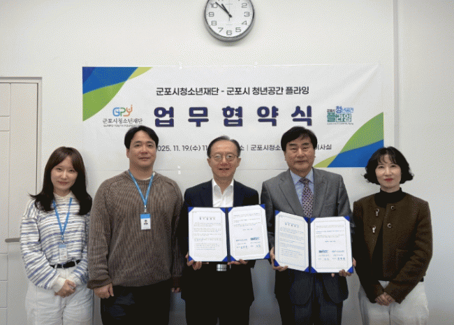 [NWS¹æ¼Û=Çѽ¸ñ ±âÀÚ]Àç´Ü¹ýÀÎ ±ºÆ÷½Ãû¼Ò³âÀç´ÜÀº 11¿ù 19ÀÏ ´ëÇ¥ÀÌ»ç½Ç¿¡¼­ ±ºÆ÷½Ãû³â°ø°£ÇöóÀ×°ú û¼Ò³â¡¤Ã»³âÀÇ ¼ºÀå ¿¬°è ¹× Âü¿© Áö¿øÀ» À§ÇÑ ¾÷¹«Çù¾àÀ» ü°áÇß´Ù. Çù¾à½Ä¿¡´Â ±è´öÈñ ±ºÆ÷½Ãû¼Ò³âÀç´Ü ´ëÇ¥ÀÌ»ç¿Í Á¶³² ±ºÆ÷½Ã¡¦
