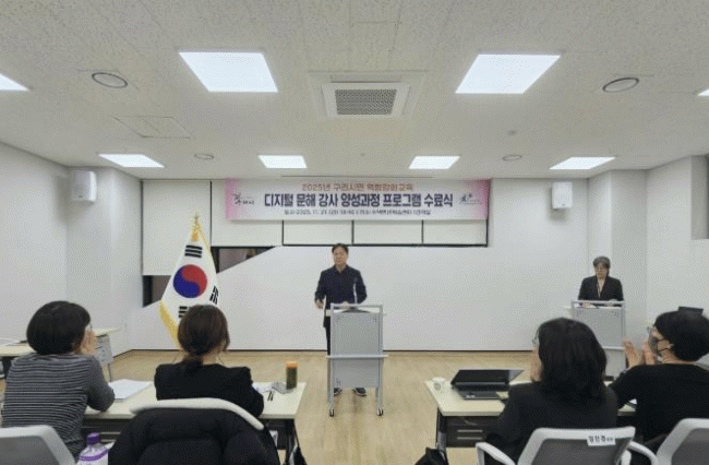 [NWS¹æ¼Û=Çѽ¸ñ ±âÀÚ]±¸¸®½Ã´Â Áö³­ 11¿ù 21ÀÏ ¼öÅÃÆò»ýÇнÀ¼¾ÅÍ¿¡¼­ ¡º±¸¸®½Ã µðÁöÅÐ ¹®ÇØ °­»ç ¾ç¼º °úÁ¤¡» ¼ö·á½ÄÀ» °³ÃÖÇß´Ù°í ¹àÇû´Ù. À̹ø °úÁ¤Àº 2025³â ±¸¸® ½Ã¹Î ¿ª·® °­È­ ÃßÁø»ç¾÷ÀÇ ÀÏȯÀ¸·Î, µðÁöÅÐ ¹®Çر³À°À» ÁöµµÇÒ Àü¡¦