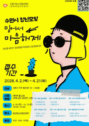 [NWS¹æ¼Û=Çѽ¸ñ ±âÀÚ]¼ö¿ø½Ãû¼Ò³âû³âÀç´Ü ûû¸¶À½°Ç°­¼¾ÅÍ´Â »çȸÀû °ü°è ¸Î±â¿¡ ¾î·Á¿òÀ» ´À³¢°Å³ª Á¤¼­Àû ¼ÒÁøÀ» °æÇèÇÏ´Â Áö¿ª û³âµéÀ» À§ÇØ Ã»³â ÀÚÁ¶¸ðÀÓ '¹Ð¾î¼­ ¸¶À½ÇØÁ¦' Âü¿©ÀÚ¸¦ ¸ðÁýÇÑ´Ù. À̹ø ÇÁ·Î±×·¥Àº ÀÏ»óÀÇ ¹«°Ô·Î¡¦