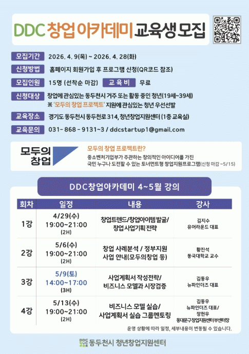 [»çȸ] µ¿µÎõ½Ã û³ââ¾÷Áö¿ø¼¾ÅÍ, 'DDC â¾÷¾ÆÄ«µ¥¹Ì' ±³À°»ý ¸ðÁý |2026. 04.13