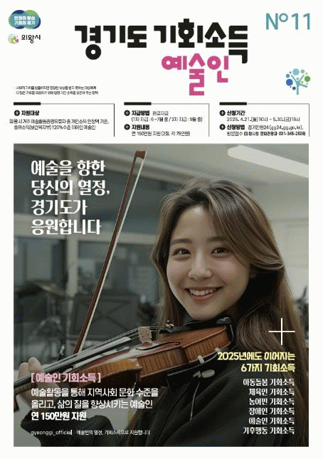 [NWS¹æ¼Û=Çѽ¸ñ ±âÀÚ]Àǿսô °æ±âµµ¿Í ÇÔ²² ¿¹¼úÀεéÀÇ Ã¢ÀÛȰµ¿À» ÃËÁøÇÏ°í ¹®È­¿¹¼ú °¡Ä¡¸¦ È®»êÇϱâ À§ÇØ '2025 °æ±âµµ ¿¹¼úÀÎ ±âȸ¼Òµæ'À» 5¿ù 30ÀϱîÁö ½Åû¹Þ´Â´Ù. Áö¿ø ´ë»óÀº 2025³â 4¿ù 21ÀÏ ±âÁØ Àǿսÿ¡ Áֹεî·ÏÀ» µÐ ¡¦