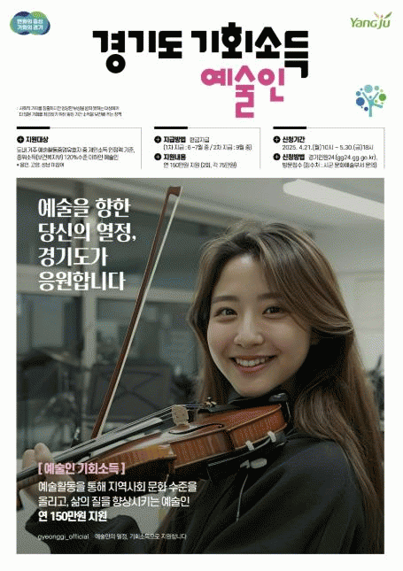 [»çȸ] ¾çÁÖ½Ã, °ü³» ¿¹¼úÀο¡ ¿¬ 150¸¸ ¿ø ±âȸ¼Òµæ¡¦5¿ù 30ÀϱîÁö ½Åû Á¢¼ö |2025. 04.22