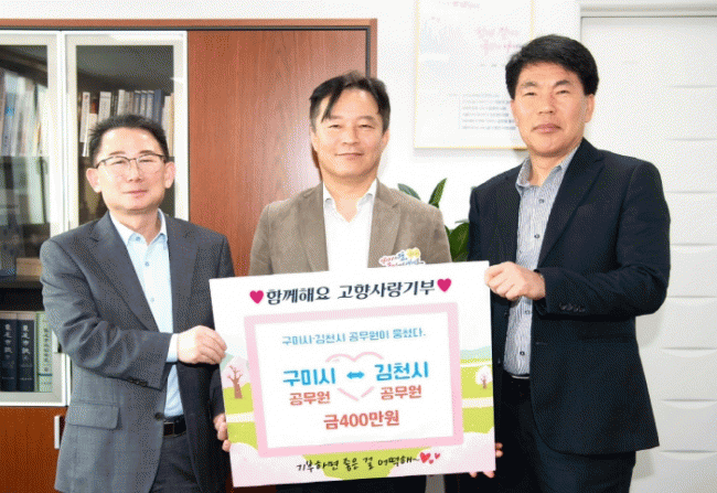 [NWS¹æ¼Û=Çѽ¸ñ ±âÀÚ]±¸¹Ì½Ã¿Í ±èõ½Ã´Â Áö³­ 22ÀÏ °íÇâ»ç¶û±âºÎÁ¦ÀÇ È°¼ºÈ­¿Í µÎ Áö¿ª °£ »ó»ýÇù·ÂÀ» À§ÇØ °íÇâ»ç¶û±âºÎ±Ý 400¸¸ ¿øÀ» »óÈ£±âºÎÇß´Ù À̹ø »óÈ£±âºÎ´Â ¾ç ½Ã ¼Ò¼Ó °ø¹«¿ø 80¿© ¸íÀÌ* ¡®³» °íÇ⠻츮±â¡¯ ÃëÁö¿¡ °ø°¨ÇØ ¡¦