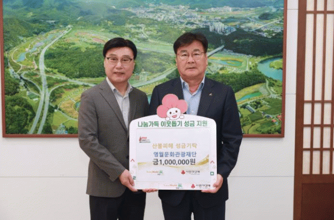 [NWS¹æ¼Û=Çѽ¸ñ ±âÀÚ]¿µ¿ù¹®È­°ü±¤Àç´ÜÀº ¿µ³²Áö¿ª »êºÒÇÇÇØ ÁֹεéÀ» µ½±â À§ÇØ ¼º±Ý 1¹é¸¸ ¿øÀ» ±âŹÇÏ¿© ÀÌ¿ô»ç¶ûÀ» ½ÇõÇß´Ù. À̹ø ¼º±ÝÀº Àç´Ü Á÷¿øµéÀÌ ÀÚ¹ßÀûÀ¸·Î Âü¿©ÇØ ½Ê½ÃÀÏ¹Ý Á¤¼ºÀ» ¸ð¾Æ ¸¶·ÃÇÑ °ÍÀ¸·Î ÇÇÇØ ÁֹεéÀÇ ºü¡¦