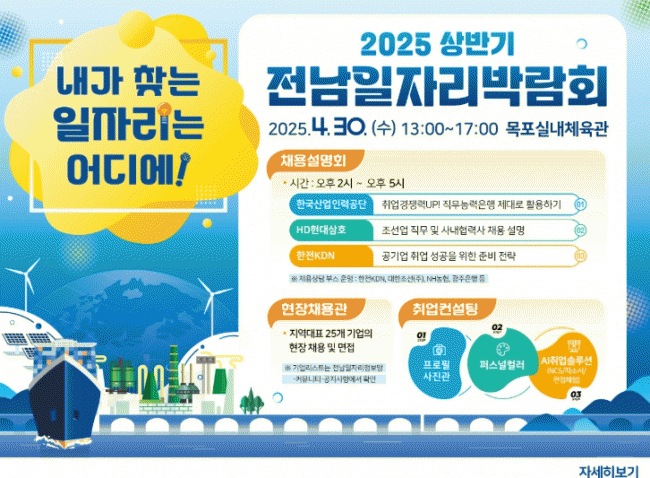 [NWS¹æ¼Û=ÇãÀº¼­ ±âÀÚ]Àü¶ó³²µµ´Â ¿À´Â 30ÀÏ ¸ñÆ÷½Ç³»Ã¼À°°ü¿¡¼­ ¡®2025 »ó¹Ý±â Àü³²ÀÏÀÚ¸®¹Ú¶÷ȸ¡¯¸¦ °³ÃÖÇÑ´Ù. Á¶¼±¾÷¡¤½Äǰ Á¦Á¶¾÷¡¤°ü±¤¼÷¹Ú µî ´Ù¾çÇÑ ºÐ¾ß 28°³ ±â¾÷¿¡¼­ 148¸í ä¿ëÀ» ¸ñÇ¥·Î Çϰí ÀÖ´Ù. Ãë¾÷ ´ë»óÀÚ´Â ÀÏ¹Ý ±¸Á÷¡¦