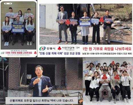 [NWS¹æ¼Û=Çѽ¸ñ ±âÀÚ]¾Èµ¿½Ã Áö¿ª»çȸ °÷°÷¿¡¼­ »êºÒÇÇÇØ ±Øº¹À» À§ÇÑ 1¸¸ ¿ø ¼º±Ý ¸ð±Ý¿¡ ½Ã¹ÎÀÇ ÁÖµµÀû Âü¿©°¡ Ȱ¹ßÇÏ°Ô À̾îÁö°í ÀÖ´Ù. ¶ÇÇÑ »çȸº¹Áö °ü·Ã ´Üü.±â°ü¿¡¼­´Â SNS¸¦ ÅëÇÑ 1¸¸ ¿ø ¼º±Ý 縰Áö µ¿¿µ»óÀ» Á¦ÀÛÇØ, ¡®ÇÔ²²¡¦