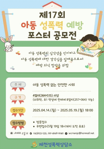 [»çȸ] Á¦Ãµ¼ºÆø·Â»ó´ã¼Ò, Á¦17ȸ ¾Æµ¿ ¼ºÆø·Â ¿¹¹æ Æ÷½ºÅÍ °ø¸ðÀü Âü°¡ÀÚ ¸ðÁý |2025. 04.22