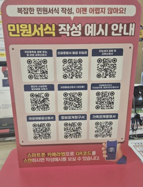 [NWS¹æ¼Û=Çѽ¸ñ ±âÀÚ]Á¦Ãµ½Ã´Â 4¿ùºÎÅÍ ¹Î¿øÀεéÀÌ ÀÚÁÖ ÀÌ¿ëÇÏ´Â 17Á¾ÀÇ ¹Î¿ø¼­½Ä ÀÛ¼º ¿¹½Ã¸¦ Å¥¾Ë(QR)ÄÚµå ¾È³»¹®À¸·Î Á¦ÀÛÇÏ¿© ¹Î¿øÀεéÀÌ ½Ã°ø°£ Á¦¾à ¾øÀÌ ½±°Ô ¹Î¿ø ½Åû¼­¸¦ ÀÛ¼ºÇÒ ¼ö ÀÖ°Ô ÇÑ´Ù°í ¹àÇû´Ù. ±×µ¿¾È ¹Î¿ø¾÷¹« ½Å¡¦