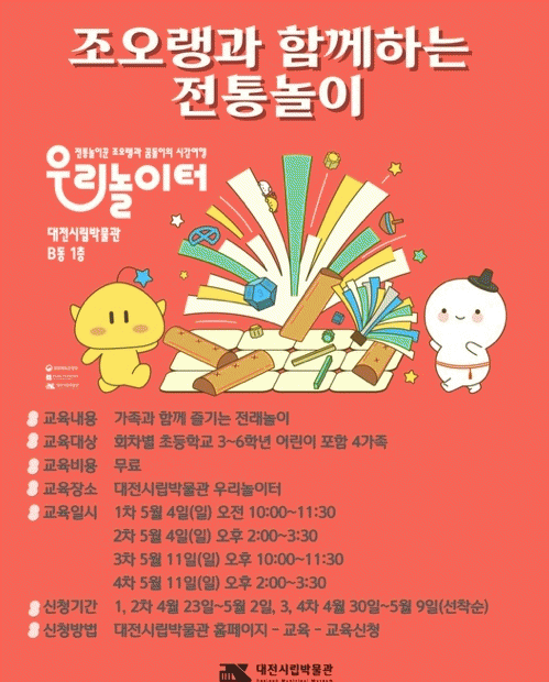 [NWS¹æ¼Û=Çѽ¸ñ ±âÀÚ]´ëÀü½Ã¸³¹Ú¹°°üÀº 5¿ù °¡Á¤ÀÇ ´ÞÀ» ¸Â¾Æ °¡Á· ´ÜÀ§ °ü¶÷°´À» À§ÇÑ ±³À° ÇÁ·Î±×·¥ ¡®Á¶¿À·©°ú ÇÔ²²ÇÏ´Â ÀüÅë³îÀÌ¡¯¸¦ ¿À´Â 5¿ù 4Àϰú 11ÀÏ °¢°¢ ¿ÀÀü 10½Ã¿Í ¿ÀÈÄ 2½Ã, ÃÑ 4ȸ¿¡ °ÉÃÄ ¿î¿µÇÑ´Ù. 2024³â ù¼±À» º¸ÀΡ¦
