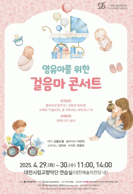 [NWS¹æ¼Û=Çѽ¸ñ ±âÀÚ]´ëÀü½Ã¸³±³Çâ¾Ç´ÜÀÌ °ø¿¬Àå ¹æ¹®ÀÌ ¾î·Á¿ü´ø ¿µÀ¯¾Æ¿Í ¾çÀ°ÀÚ¸¦ À§ÇØ Æ¯º°È÷ ¸¶·ÃÇÑ ¡®°ÉÀ½¸¶ Äܼ­Æ®¡¯¸¦ ¿À´Â 4¿ù 29ÀϺÎÅÍ 30ÀϱîÁö ¿ÀÀü 11½Ã¿Í ¿ÀÈÄ 2½Ã, ÃÑ 4ȸ¿¡ °ÉÃÄ ´ëÀü¿¹¼úÀÇÀü´ç ³» ½Ã¸³±³Çâ¾Ç´Ü ¿¬½À½Ç¡¦