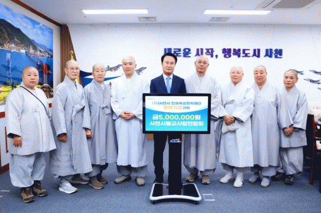 [NWS¹æ¼Û=Çѽ¸ñ ±âÀÚ]»çõ½Ã ºÒ±³»ç¾Ï¿¬ÇÕȸ°¡ ºÎó´Ô ¿À½Å ³¯À» ¸Â¾Æ 21ÀÏ (Àç)»çõ½ÃÀÎÀçÀ°¼ºÀåÇÐÀç´Ü¿¡ 500¸¸ ¿øÀÇ ÀåÇбÝÀ» Àü´ÞÇß´Ù. ÇØÀϽº´ÔÀº ¡°ÁÁÀº ³¯À» ¸Â¾Æ ¿ÃÇØµµ Áö¿ª ÇлýµéÀ» À§ÇØ ³ª´­ ¼ö ÀÖ¾î ±â»Ú´Ù¡±¸ç ¡°¿ì¸® Áö¿ª¡¦