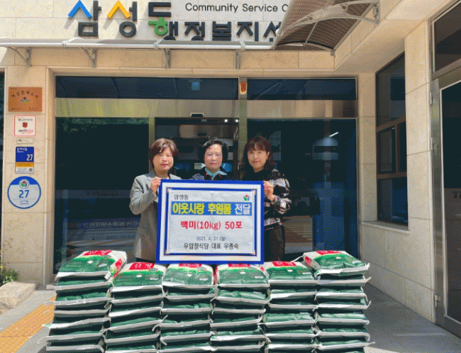 [NWS¹æ¼Û=Çѽ¸ñ ±âÀÚ] ¾ç»ê½Ã ºÏÁ¤µ¿ ¼ÒÀçÀÇ ¿ì¾ÏÀå½Ä´ç(´ëÇ¥ ¿ìÁ¾¼÷)ÀÌ ½Ò10kg 50Æ÷(140¸¸¿ø »ó´ç)¸¦ »ï¼ºµ¿ ÇàÁ¤º¹Áö¼¾ÅÍ¿¡ ±âŹÇß´Ù. ¿ìÁ¾¼÷ ¿ì¾ÏÀå ´ëÇ¥´Â Áö¿ª³» 30³â°£ °¡°Ô¸¦ ¿î¿µÇØ¿À¸é¼­ Áö¿ª ³» ¼Ò¿ÜµÈ ÀÌ¿ôµéÀ» À§ÇØ ¸Å³â¡¦