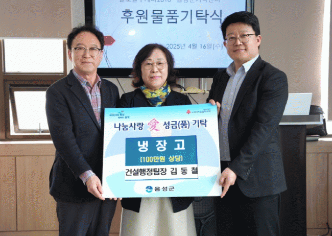 [NWS¹æ¼Û=Çѽ¸ñ ±âÀÚ]À½¼º±º °Ç¼³±³Åë°ú °Ç¼³ÇàÁ¤ÆÀÀÇ ±èµ¿Ã¶ ÆÀÀåÀÌ ÃÖ±Ù À½¼º°íµîÇб³ Ãѹ®È¸ Çà»ç¿¡¼­ °æÇ°À¸·Î ¹ÞÀº 100¸¸¿ø »ó´çÀÇ ³ÃÀå°í¸¦ À½¼º±º°¡Á·¼¾ÅÍ¿¡ ±âÁõÇØ Áö¿ª»çȸ¿¡ ÈÆÈÆÇÑ °¨µ¿À» ÁÖ°í ÀÖ´Ù. ±èµ¿Ã¶ ÆÀÀåÀº ¡°¶æ±í¡¦