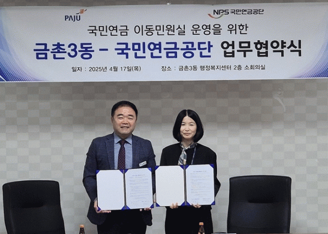 [NWS¹æ¼Û=Çѽ¸ñ ±âÀÚ]ÆÄÁֽà ±ÝÃÌ3µ¿ ÇàÁ¤º¹Áö¼¾ÅÍ´Â Áö³­ 17ÀÏ ±¹¹Î¿¬±Ý°ø´Ü ÆÄÁÖÁö»ç¿Í ¡®±¹¹Î¿¬±Ý À̵¿¹Î¿ø½Ç¡¯ ¿î¿µ Çù¾àÀ» ü°áÇØ °ü³» ±¹¹Î¿¬±Ý ¹Î¿ø»ó´ã ¼­ºñ½º È®´ë¸¦ À§ÇØ Àû±Ø Çù·ÂÇϱâ·Î ¾à¼ÓÇß´Ù. ¡®±¹¹Î¿¬±Ý À̵¿¹Î¿ø½Ç¡¯¡¦
