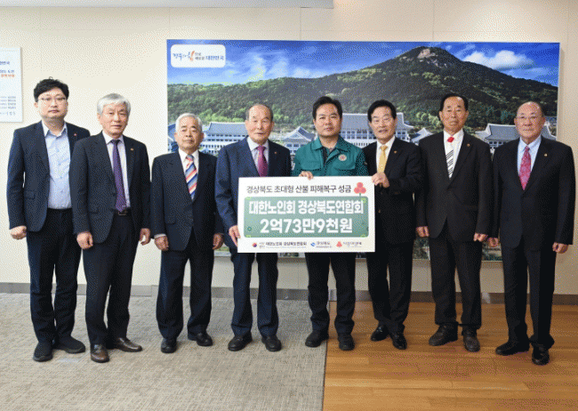 [NWS¹æ¼Û=Çѽ¸ñ ±âÀÚ]´ëÇѳëÀÎȸ °æ»óºÏµµ¿¬ÇÕȸ°¡ 21ÀÏ °æºÏµµÃ»À» ¹æ¹®ÇØ À̹ø ÃÊ´ëÇü »êºÒ·Î Å« ÇÇÇØ¸¦ º» ÀÌ¿ôµéÀ» À§ÇØ ½á´Þ¶ó¸ç »êºÒ ÇÇÇØº¹±¸ ¼º±Ý 2¾ï 73¸¸ 9õ ¿øÀ» Àü´ÞÇß´Ù. À̹ø ¼º±ÝÀº ´ëÇѳëÀÎȸ °æ»óºÏµµ¿¬ÇÕȸ¿Í µµ³» ¡¦