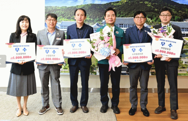 [NWS¹æ¼Û=Çѽ¸ñ ±âÀÚ]°æ»óºÏµµ´Â 21ÀÏ ÇàÁ¤ºÎÁö»ç½Ç¿¡¼­ ¡®2025³â 1ºÐ±â µµÁ¤ ¼º°ú ¿ì¼öºÎ¼­ ½Ã»ó½Ä¡¯À» °³ÃÖÇϰí, µµÁ¤ °¢ ºÐ¾ß¿¡¼­ Ź¿ùÇÑ ¼º°ú¸¦ °ÅµÎ¾î ¼±Á¤µÈ 5°³ ºÎ¼­¸¦ °Ý·ÁÇß´Ù. À̹ø ½Ã»ó½ÄÀº 1ºÐ±â, ÃÊ´ëÇü »êºÒ·Î ÀÎÇÑ Àç³­¡¦