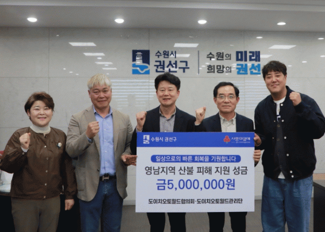 [NWS¹æ¼Û=Çѽ¸ñ ±âÀÚ]µµÀÌÄ¡¿ÀÅä¿ùµåÇùÀÇȸ¿Í µµÀÌÄ¡¿ÀÅä¿ùµå°ü¸®´ÜÀº Áö³­ 21ÀÏ, ¿ª´ë ÃÖ´ë±Ô¸ðÀÇ »êºÒ·Î ÇÇÇØ¸¦ ÀÔÀº ¿µ³²Áö¿ª ÁֹεéÀ» µ½±â À§ÇØ ¼º±Ý 500¸¸¿øÀ» °æ±â »çȸº¹Áö°øµ¿¸ð±Ýȸ(»ç¶ûÀÇ ¿­¸Å)¿¡ ±âºÎÇß´Ù. À̹ø ¼º±ÝÀº °©¡¦