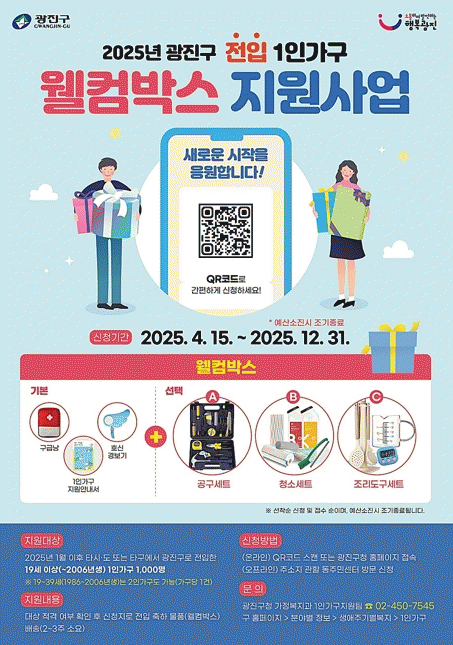 [NWS¹æ¼Û=Çѽ¸ñ ±âÀÚ]±¤Áø±¸°¡ ÀüÀÔ 1Àΰ¡±¸¸¦ ´ë»óÀ¸·Î ÃàÇÏ ¼±¹° ¡®À£ÄĹڽº¡¯¸¦ Áö¿øÇÑ´Ù. ÀüÀÔ 1Àΰ¡±¸ »ýȰ¿¡ À¯¿ëÇÑ ¹°Ç°°ú Á¤Ã¥ ¾È³»¼­¸¦ ´ãÀº ¡®À£ÄĹڽº¡¯¸¦ Á¦°øÇÔ°ú µ¿½Ã¿¡, »ýȰ½ÇÅ Á¶»ç¸¦ ÅëÇØ °í¸³ À§Çè °¡±¸¸¦ ¼±Á¦ÀûÀ¸¡¦