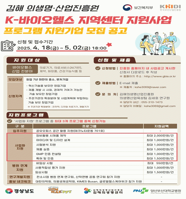 [°Ç°­] ±èÇØÀÇ»ý¸í.»ê¾÷ÁøÈï¿ø, 2025³â K-¹ÙÀÌ¿ÀÇコ ±â¾÷Áö¿ø Âü¿©±â¾÷ ¸ðÁý |2025. 04.21