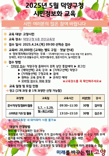 [»çȸ] °í¾ç½Ã ´ö¾ç±¸, 24ÀϺÎÅÍ Á¦4Â÷ ½Ã¹ÎÁ¤º¸È­±³À° Á¢¼ö |2025. 04.21
