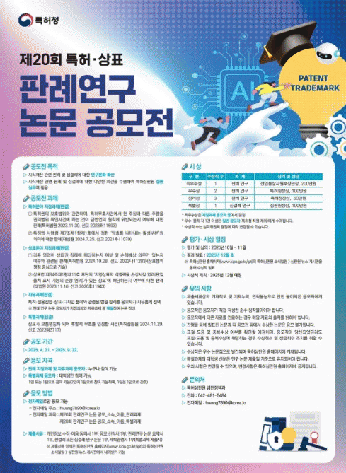 [NWS¹æ¼Û=Çѽ¸ñ ±âÀÚ]ƯÇãû ƯÇã½ÉÆÇ¿øÀº Áö½ÄÀç»ê±Ç¿¡ ´ëÇÑ °ü½É°ú ¿¬±¸¹®È­ È®»êÀ» À§ÇØ 4¿ù 21ÀÏ~9¿ù 22ÀϱîÁö ¡®Á¦20ȸ ƯÇ㡤»óÇ¥ ÆÇ·Ê ¿¬±¸ ³í¹® °ø¸ðÀü¡¯À» °³ÃÖÇÑ´Ù°í ¹àÇû´Ù. À̹ø¿¡´Â ±âÁ¸ÀÇ ÆÇ·Ê ¿¬±¸°úÁ¦ ¿Ü¿¡ ÇлýÀ» ´ë¡¦
