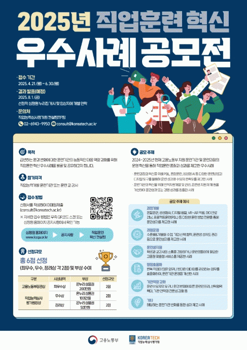 [NWS¹æ¼Û=Çѽ¸ñ ±âÀÚ]°í¿ë³ëµ¿ºÎ Çѱ¹±â¼ú±³À°´ëÇб³(KOREATECH) Á÷¾÷´É·Â½É»çÆò°¡¿øÀº °í¿ë³ëµ¿ºÎ¿Í ÇÔ²² Á÷¾÷ÈÆ·ÃÀ» ¼±µµÇÏ´Â Çõ½ÅÀû »ç·Ê¸¦ ¹ß±¼Çϰí È®»êÇϱâ À§ÇØ '2025³âµµ Á÷¾÷ÈÆ·Ã Çõ½Å ¿ì¼ö»ç·Ê °ø¸ðÀü'À» °³ÃÖÇÑ´Ù. À̹ø °ø¸ð¡¦