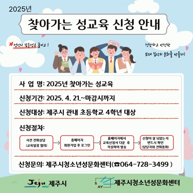 [NWS¹æ¼Û=Çѽ¸ñ ±âÀÚ]Á¦ÁÖ½Ãû¼Ò³â¼º¹®È­¼¾ÅÍ´Â °ü³» ÃʵîÇб³ 4ÇгâÀ» ´ë»óÀ¸·Î 2025³â ã¾Æ°¡´Â ¼º±³À° ÇÁ·Î±×·¥À» 5¿ùºÎÅÍ 11¿ù±îÁö ¿î¿µÇÑ´Ù. À̹ø ÇÁ·Î±×·¥Àº û¼Ò³âÀÇ ¼ºÀÎÁö °¨¼ö¼ºÀ» ³ôÀ̰í, ¼ºÆø·Â °³³äÀ» ÀÌÇØÇÏ¿© ¼ºÆø·ÂÀÌ¡¦