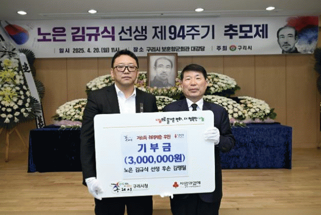 [»çȸ] ±¸¸®½Ã, ³ëÀº ±è±Ô½Ä ¼±»ý ÈļÕÀ¸·ÎºÎÅÍ ±âºÎ±Ý Àü´Þ¹Þ¾Æ |2025. 04.21