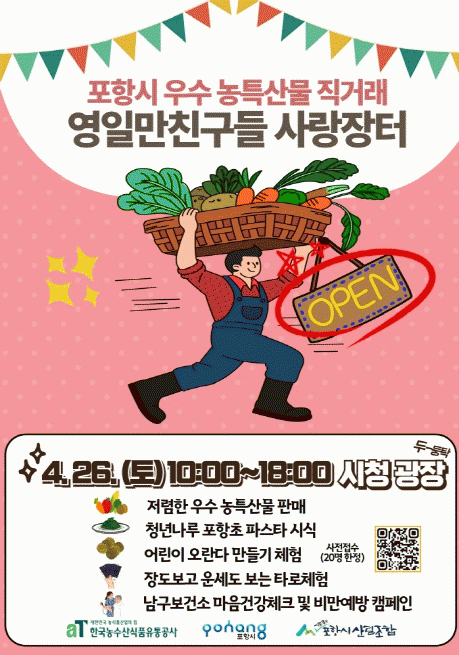 [°æÁ¦] Á÷°Å·¡·Î Æ÷Ç× ¿ì¼ö ³óƯ»ê¹° ¸¸³ª¿ä! 26ÀÏ ¿µÀϸ¸Ä£±¸µé »ç¶ûÀåÅÍ °³Àå |2025. 04.21