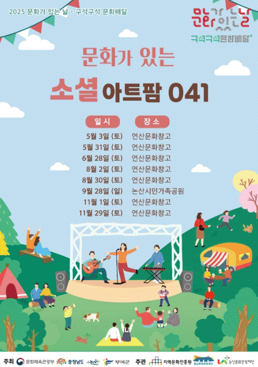 [NWS¹æ¼Û=Çѽ¸ñ ±âÀÚ] (Àç)³í»ê¹®È­°ü±¤Àç´ÜÀÌ ¡®2025 ¹®È­°¡ ÀÖ´Â ³¯ - ±¸¼®±¸¼® ¹®È­¹è´Þ¡¯»ç¾÷¿¡ ¼±Á¤µÇ¾î 5¿ùºÎÅÍ 11¿ù±îÁö '¹®È­°¡ ÀÖ´Â ¼Ò¼È ¾ÆÆ®ÆÊ 041' Çà»ç¸¦ ÃßÁøÇÑ´Ù. '2025 ¹®È­°¡ ÀÖ´Â ³¯ - ±¸¼®±¸¼® ¹®È­¹è´Þ'Àº ¹®È­Ã¼¡¦
