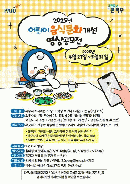 [»çȸ] ÆÄÁÖ½Ã, ¾î¸°ÀÌ À½½Ä¹®È­°³¼± ¿µ»ó °ø¸ðÀü °³ÃÖ |2025. 04.21