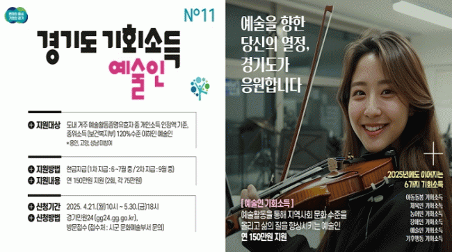 [NWS¹æ¼Û=Çѽ¸ñ ±âÀÚ]ÆÄÁֽô ¿À´Â 21ÀϺÎÅÍ 5¿ù 30ÀϱîÁö Áö¿ª ¿¹¼úÀÎÀÇ Ã¢ÀÛ È°µ¿À» µ¶·ÁÇϱâ À§ÇØ °æ±âµµ¿Í °øµ¿À¸·Î ÃßÁøÇÏ´Â ¡®¿¹¼úÀÎ ±âȸ¼Òµæ¡¯ ½ÅûÀ» ¹Þ´Â´Ù. ¡®¿¹¼úÀÎ ±âȸ¼Òµæ »ç¾÷¡¯Àº »çȸÀû °¡Ä¡Ã¢Ãâ¿¡ ´ëÇÑ Á¤´çÇÑ º¸»ó¡¦
